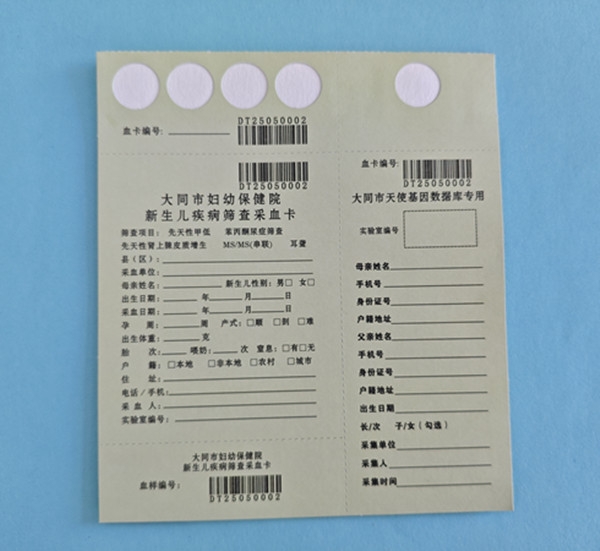 关键词:新生儿采血卡,五环内置型采血卡,新生儿采血卡价格